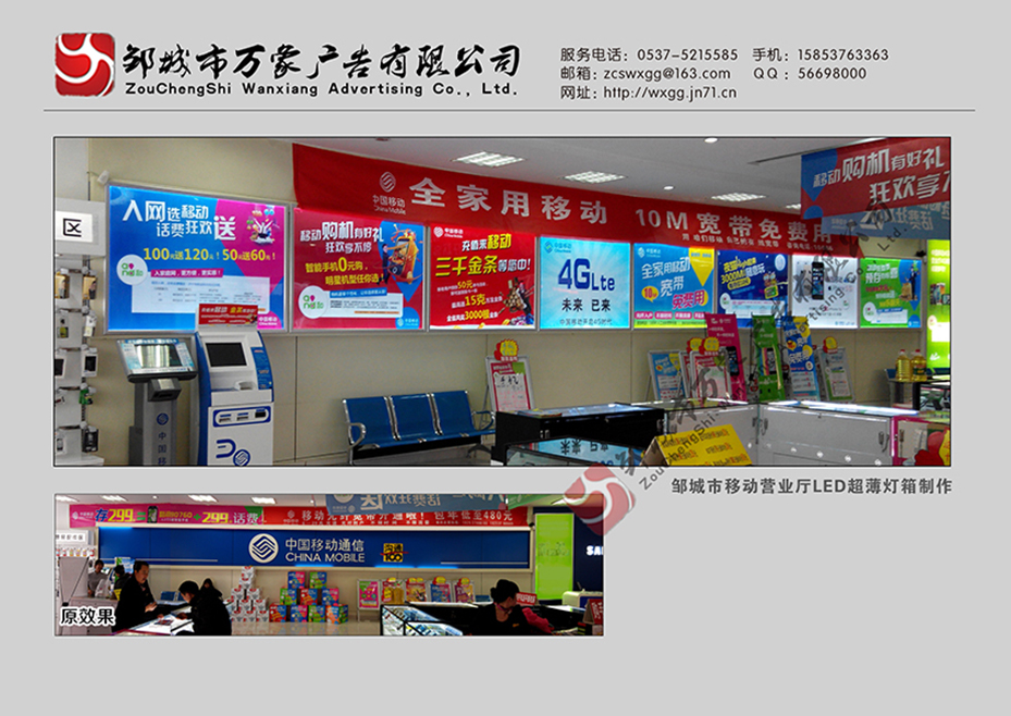 中国移动邹城峄山北路营业厅灯箱