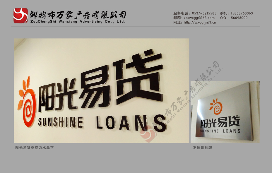 邹城阳光易贷亚克力水晶字、不锈钢标识牌制作