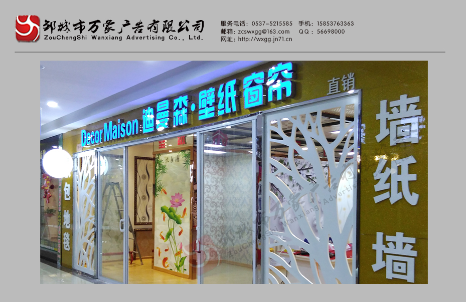 千泉装饰城展厅迪曼森壁纸门头发光字制作