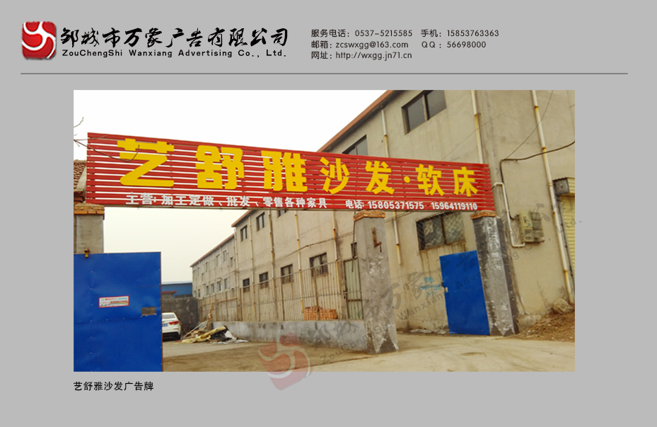 邹城艺舒雅沙发广告牌制作