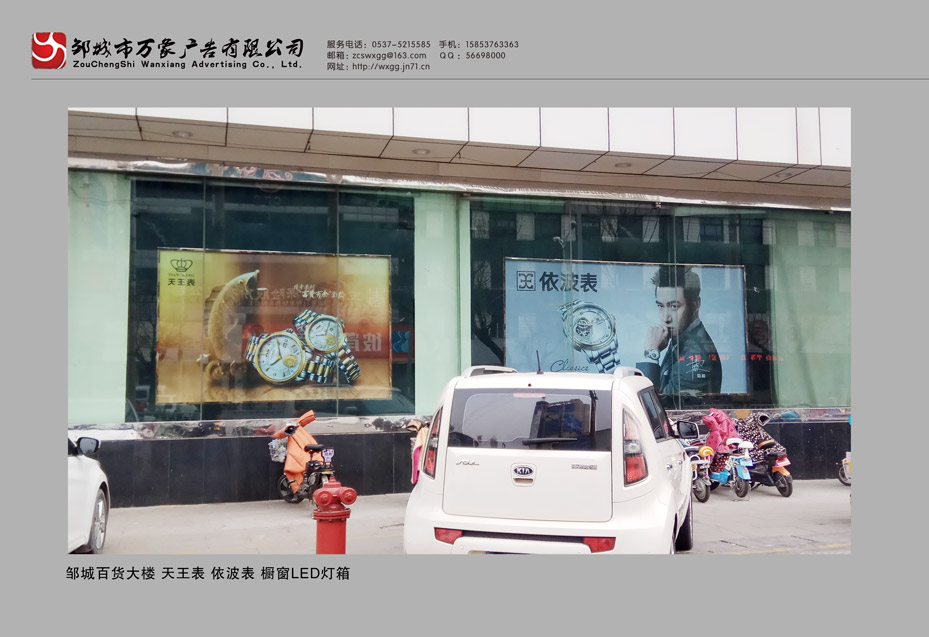 邹城百货大楼天王表依波表橱窗灯箱制作